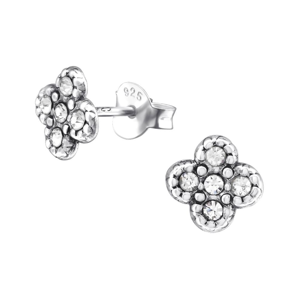 Kauniit hopeakorvakorut jotka ovat koristeltu pienillä cubic zirkonia kivillä. Hopeakorvakorvakorujen koko on 7 x 7 mm. Korvakoruissa on napakka nappikiinnitys.