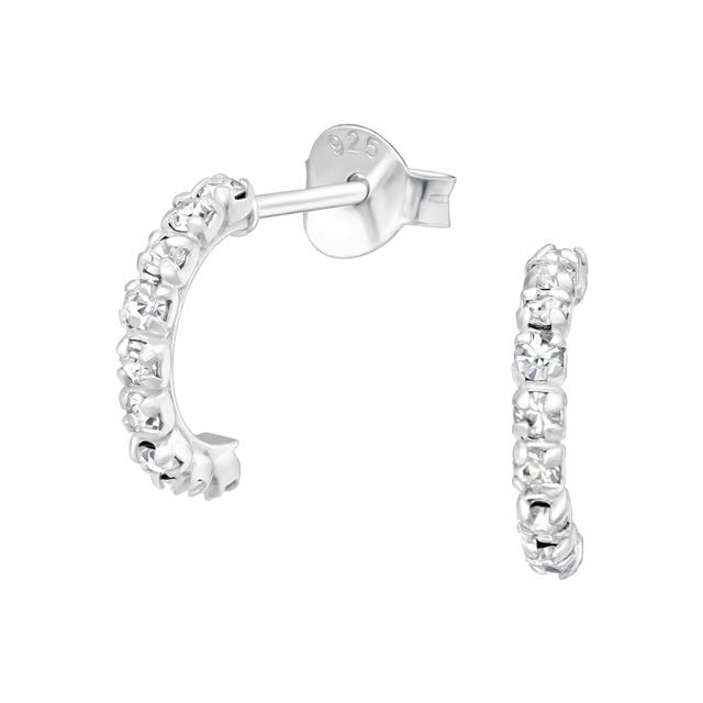 Hopeiset kauniit hopeakorvakorut Cubic Zirkonia kivillä. Korvakorujen koko 10 mm. Korvakoruissa on napakka nappikinnitys.