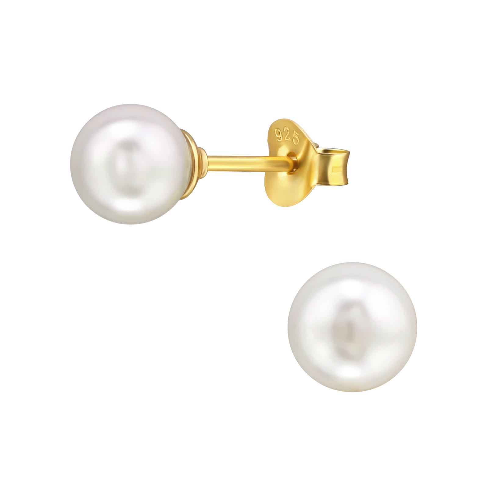 Kauniit 925-Steling kullatut hopeakorvakorut valkoisella helmellä Korvakoruissa on napakka nappikiinnitys. Korvakorujen koko on 6 mm.