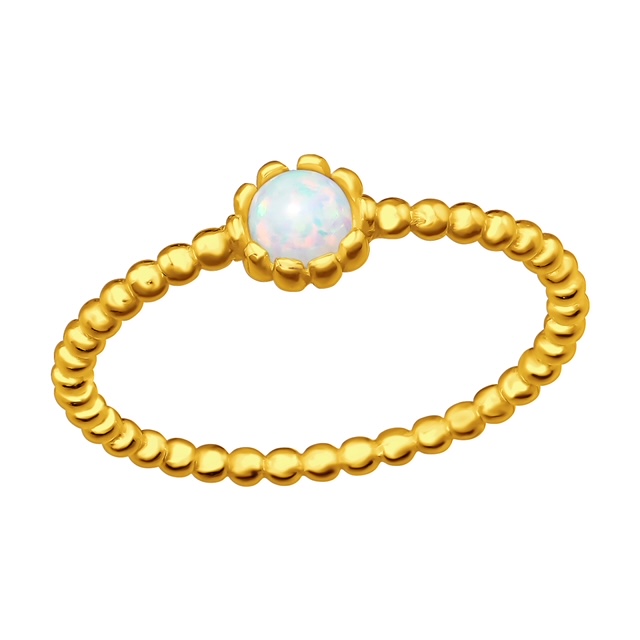 Upea kullattu sterling hopeasormus synteettisellä opaalikivellä.