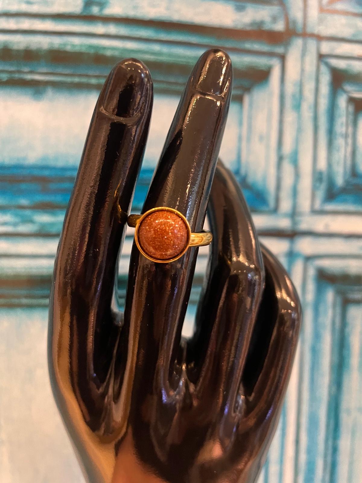 Kaunis terässormus kultaisella hiekkakivellä. Sormus voidaan säätää sopivan kokoiseksi 17-20,5 koon välillä. Ilmoita kokosi tilauksesi yhteydessä tai säädä itse (tarvitset työkaluksi pihdit). Sormus ei tummu, värjää tai allergisoi ihoa. Voit pestä käsiä ja käyttää sormusta myös suihkussa. Kullanväriset sormukset pysyvät ikuisesti kullanvärisenä. Saatavana teräksen- ja kullan värisenä.