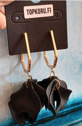 Upeat ja kevyet lehtikorvakorut tappikiinnityksellä. Korvakorut ovat valmistettu muovimassasta. Nämä korvakorut kruunaavat asukokonaisuutesi. Metalliosat ovat nikkelivapaita. Korvakorujen pituus 8 cm.