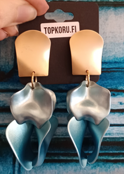 Upeat ja kevyet lehtikorvakorut tappikiinnityksellä. Korvakorut ovat valmistettu muovimassasta. Nämä korvakorut kruunaavat asukokonaisuutesi. Metalliosat ovat nikkelivapaita. Korvakorujen pituus 8 cm.