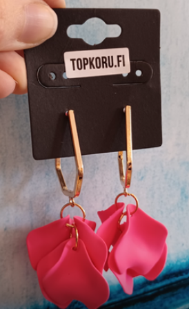 Upeat ja kevyet lehtikorvakorut tappikiinnityksellä. Korvakorut ovat valmistettu muovimassasta. Nämä korvakorut kruunaavat asukokonaisuutesi. Metalliosat ovat nikkelivapaita. Korvakorujen pituus 8 cm.