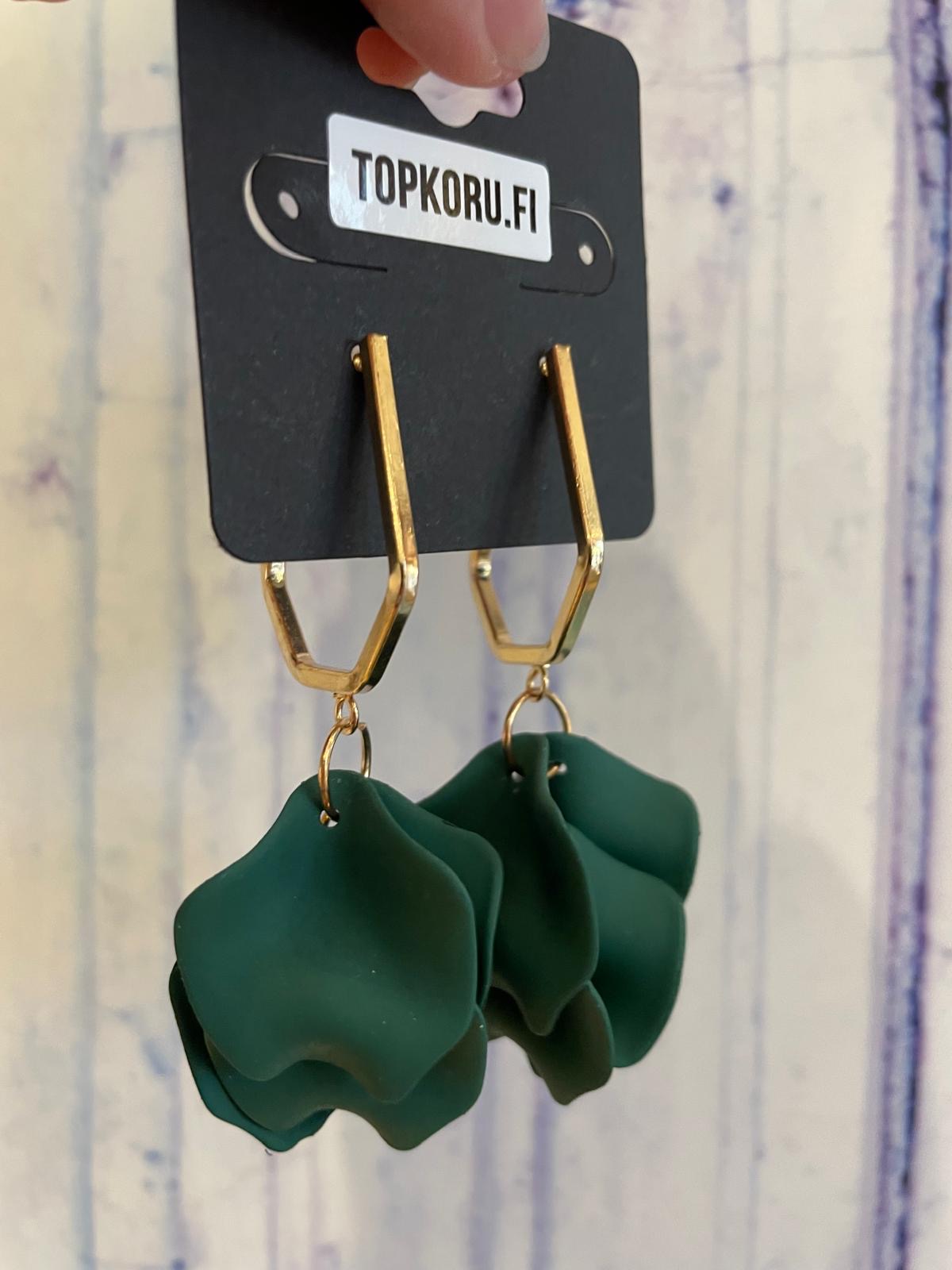 Upeat ja kevyet lehtikorvakorut tappikiinnityksellä. Korvakorut ovat valmistettu muovimassasta. Nämä korvakorut kruunaavat asukokonaisuutesi. Metalliosat ovat nikkelivapaita. Korvakorujen pituus 8 cm.