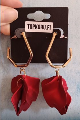Upeat ja kevyet lehtikorvakorut tappikiinnityksellä. Korvakorut ovat valmistettu muovimassasta. Nämä korvakorut kruunaavat asukokonaisuutesi. Metalliosat ovat nikkelivapaita. Korvakorujen pituus 8 cm.