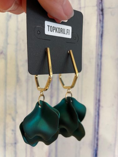 Upeat ja kevyet lehtikorvakorut tappikiinnityksellä. Korvakorut ovat valmistettu muovimassasta. Nämä korvakorut kruunaavat asukokonaisuutesi. Metalliosat ovat nikkelivapaita. Korvakorujen pituus 8 cm.