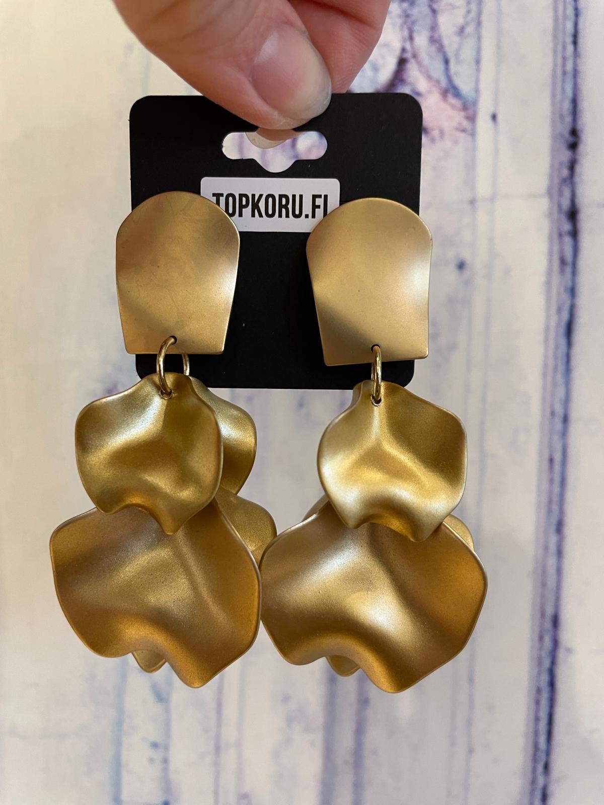 Upeat ja kevyet lehtikorvakorut tappikiinnityksellä. Korvakorut ovat valmistettu muovimassasta. Nämä korvakorut kruunaavat asukokonaisuutesi. Metalliosat ovat nikkelivapaita. Korvakorujen pituus 6,5 cm.
