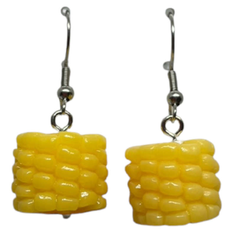 Hauskat maissikorvakorut. Koko 13 X 15 mm. Maissi on valmistettu muovimassasta.
