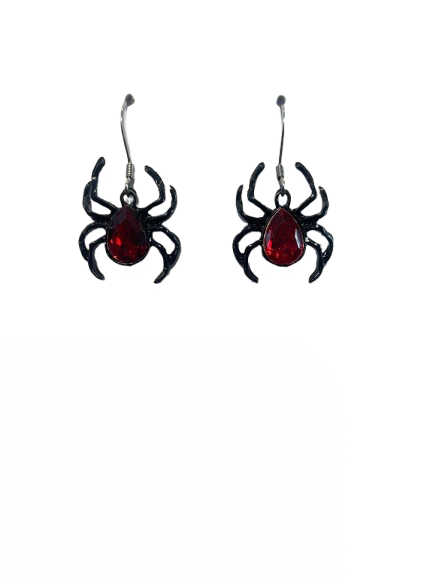 Hauskat hämähäkkikorvakorut punaisella kivellä. Koko 18 X 18mm. Korvakorut on valmistettu allergiavapaasta korumetallista.