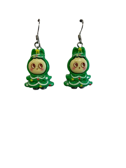 Ihanat ja kevyet joluiset labubukorvakorut. Koko 14 X 8 mm. Korvakorut on valmistettu resiinistä.