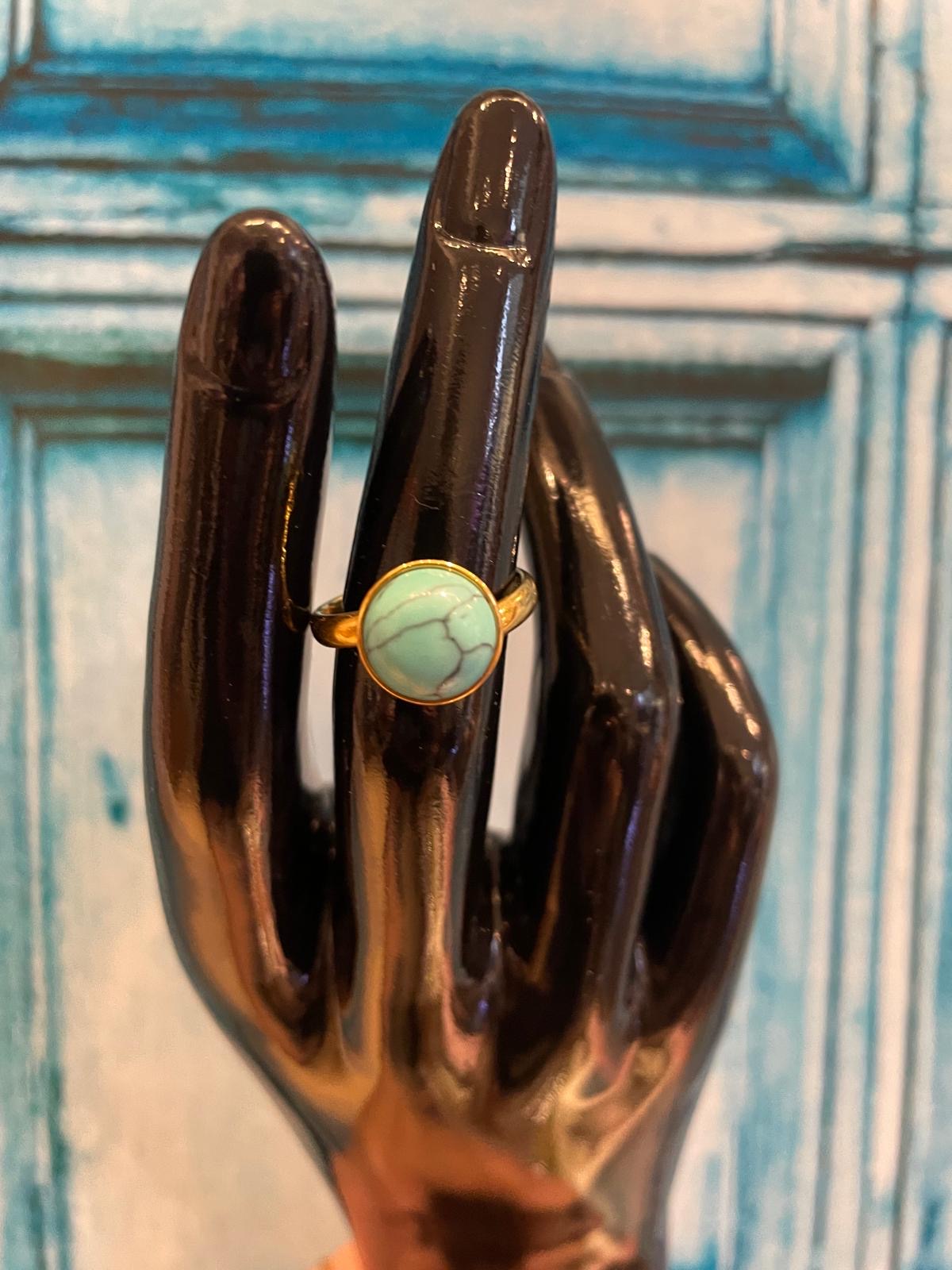 Kaunis terässormus turkoosilla. Kiven koko 10 mm. Sormus voidaan säätää sopivan kokoiseksi 17-20,5 koon välillä. Ilmoita kokosi tilauksesi yhteydessä tai säädä itse (tarvitset työkaluksi pihdit). Sormus ei tummu, värjää tai allergisoi ihoa. Voit pestä käsiä ja käyttää sormusta myös suihkussa. Kullanväriset sormukset pysyvät ikuisesti kullanvärisenä. Saatavana teräksen-, kullan- ja ruusukullan värisenä.